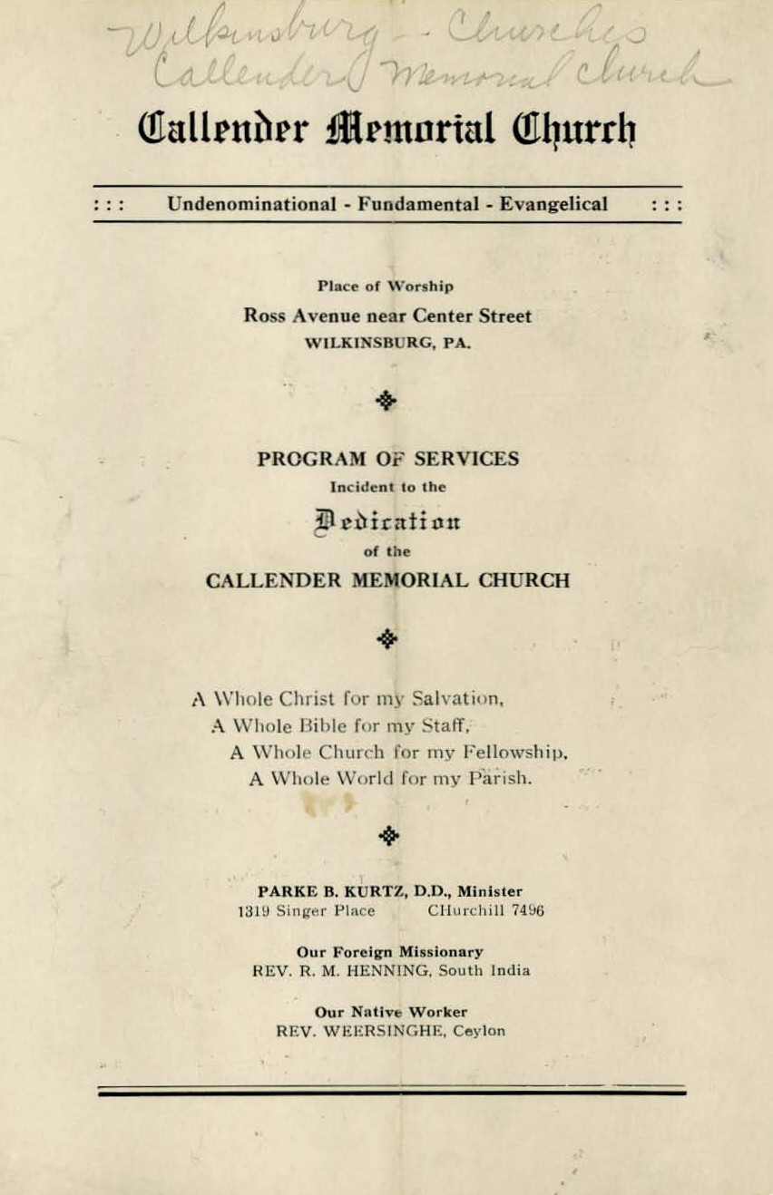 Edna Rigg Brown, “ ‘I Remember’ South Ave. Methodist Church,” June 19, 1961, at the Wilkinsburg Historical Society.