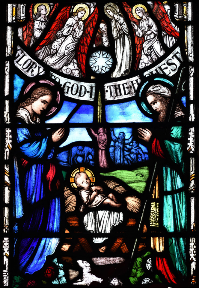 The Christmas window was given by Samuel Guy and Virginia Little in memory of their youngest son Samuel—“Sammie”—Guy Little, Jr. He lost his life on the beaches of Anzio on 2 March 1944, and is buried in the Sicily—Rome American Cemetery in Nettuno, Italy, with many others of his fallen comrades.