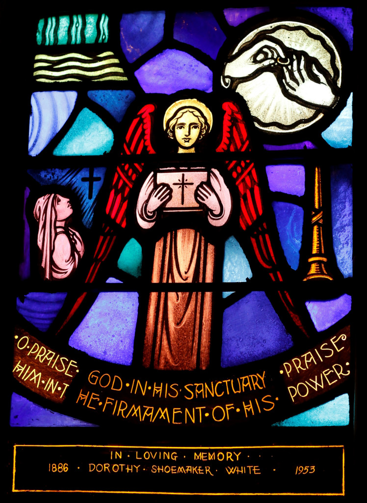 [This window was given in memory of Minnie Agnes Rowe (1882–1949)]