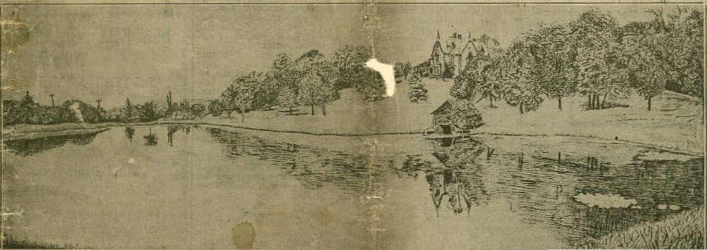 The lake, which was supplied from several springs on the hillside, was one of the main attractions of the estate and was very popular with the boys of Wilkinsburg. On warm summer evenings little William M. Turner, Willie G. Ewing and other town boys hied to the lake and oh boy, such fun “swimmin’.” Then when the wintry days came and the lake was covered with ice these same boys and many girls skated to their heart’s content. Fishing was also a popular pastime as the lake contained a variety of fish, among them some gold fish. . . .